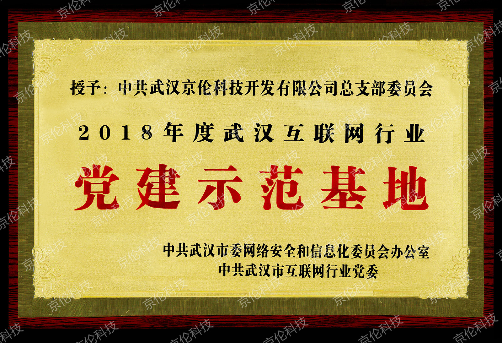 “2018年度武汉互联网行业党建示范基地”荣誉奖牌