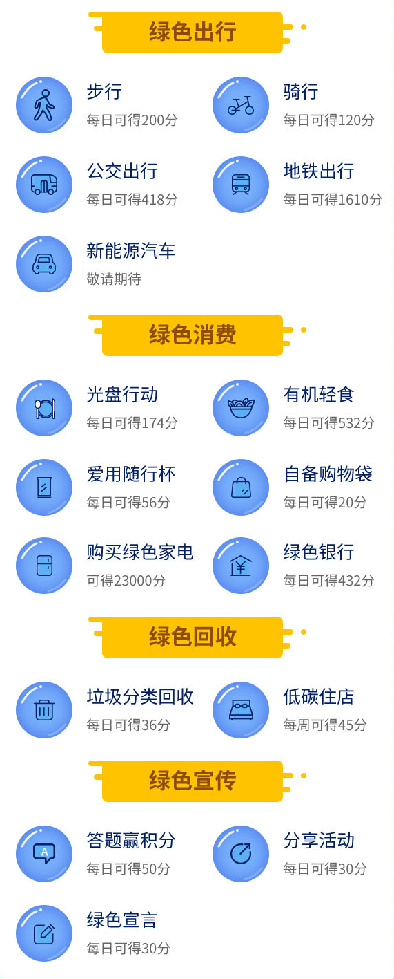 各项绿色低碳活动可获得的碳积分