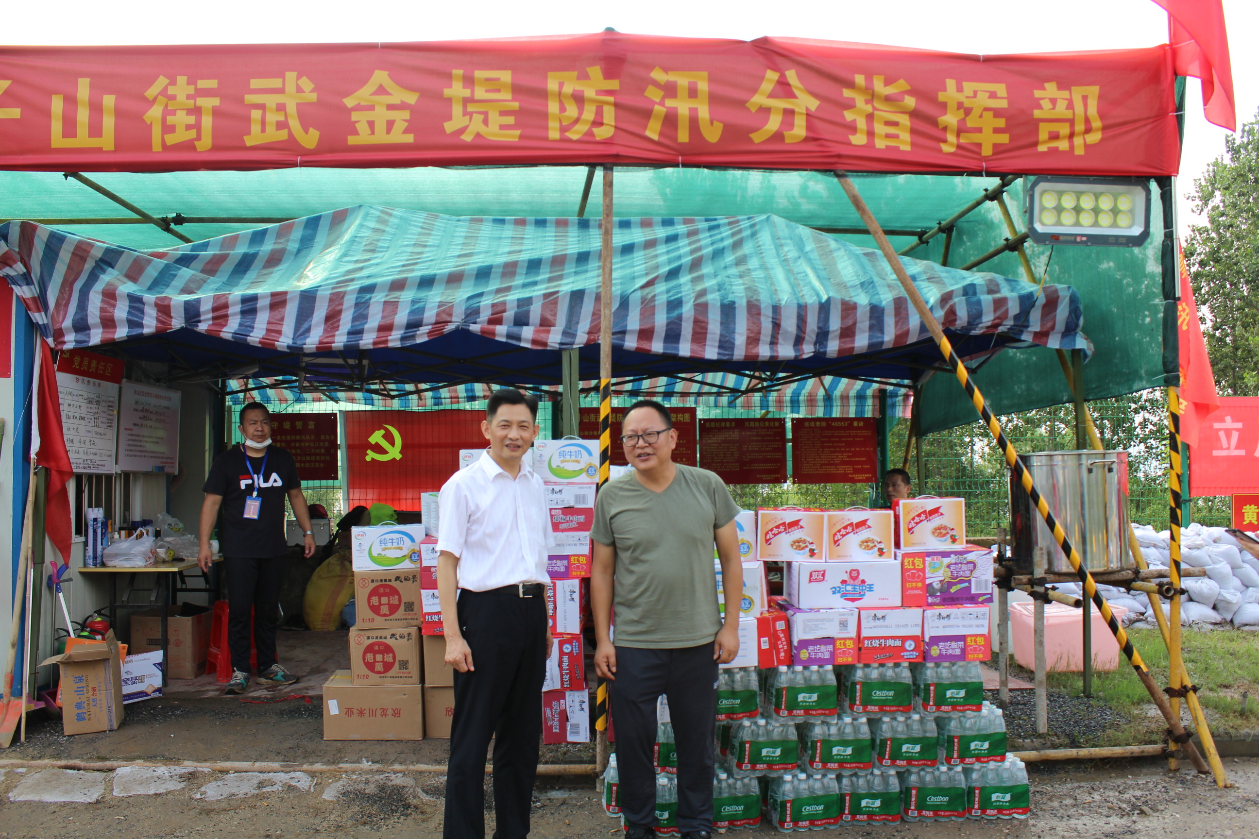 7月28日,IM电竞集团一行在董事长方总的带领下,将爱心牛奶、方便面、火腿肠、八宝粥、酸梅膏、矿泉水等物资送到了位于洪山区武金堤防汛第一线,对一线防汛人员表示深深地感谢,希望他们保重身体、注意安全,夺取防汛抗洪全面胜利!